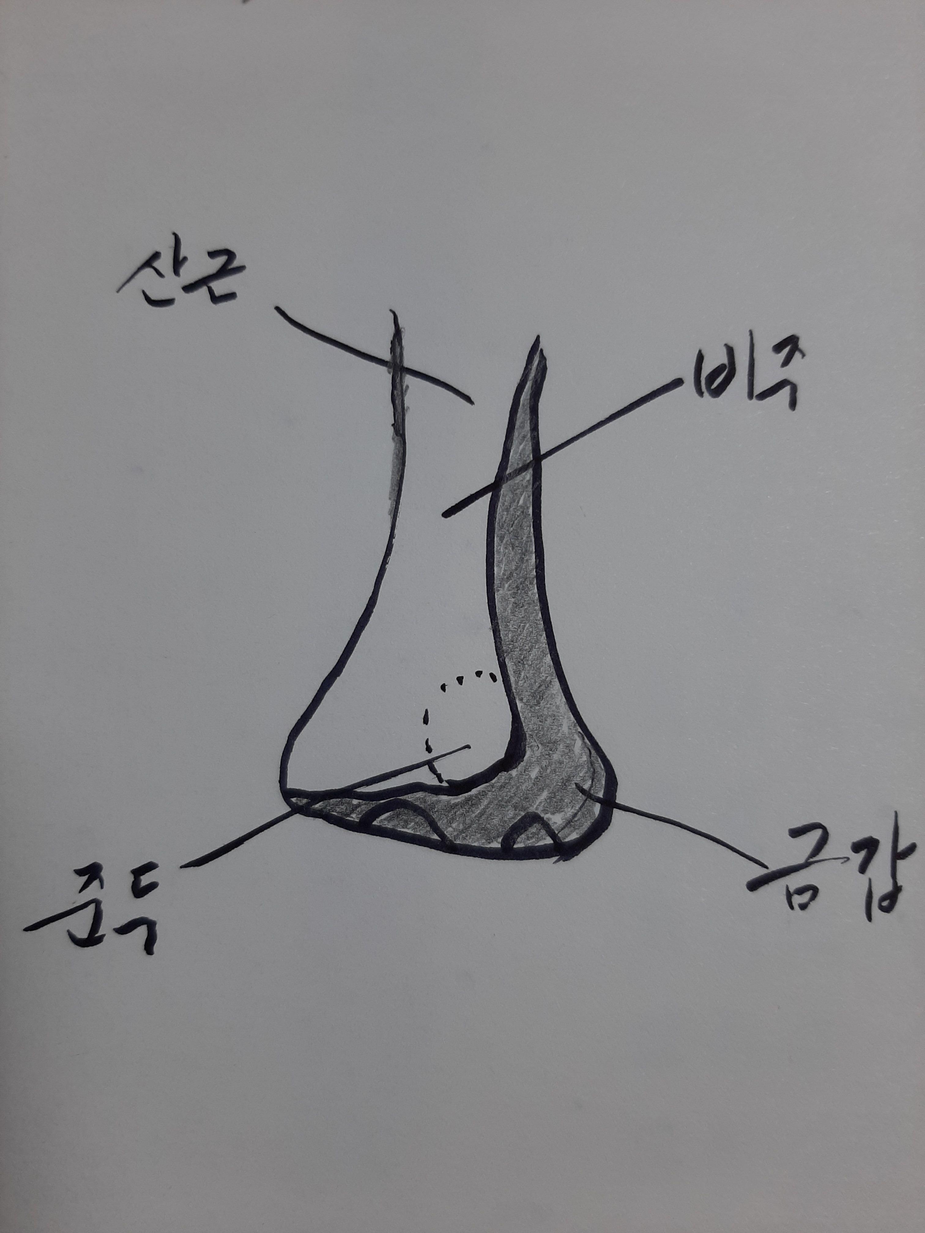 23. 코에 살집이 없고 말라 보이는 경우 - 고생을 많이 하는 상으로 신체가 약하다.